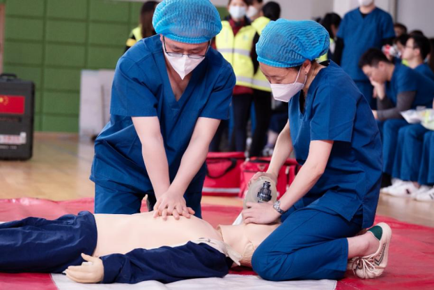 队员展示心肺复苏技术