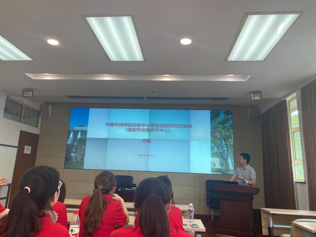 下午,国家热带病研究中心俞铖航老师带领下营员们参观了研究中心,并由俞铖航老师、肖宁所长、重点实验室副主任胡媛老师三位老师对中心进行了简要的介绍。