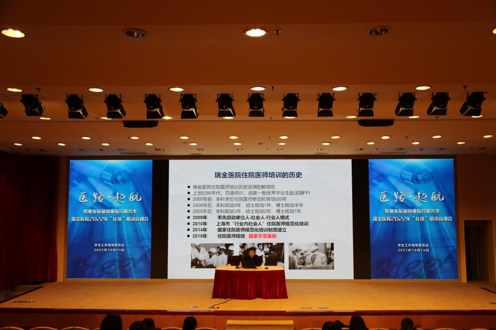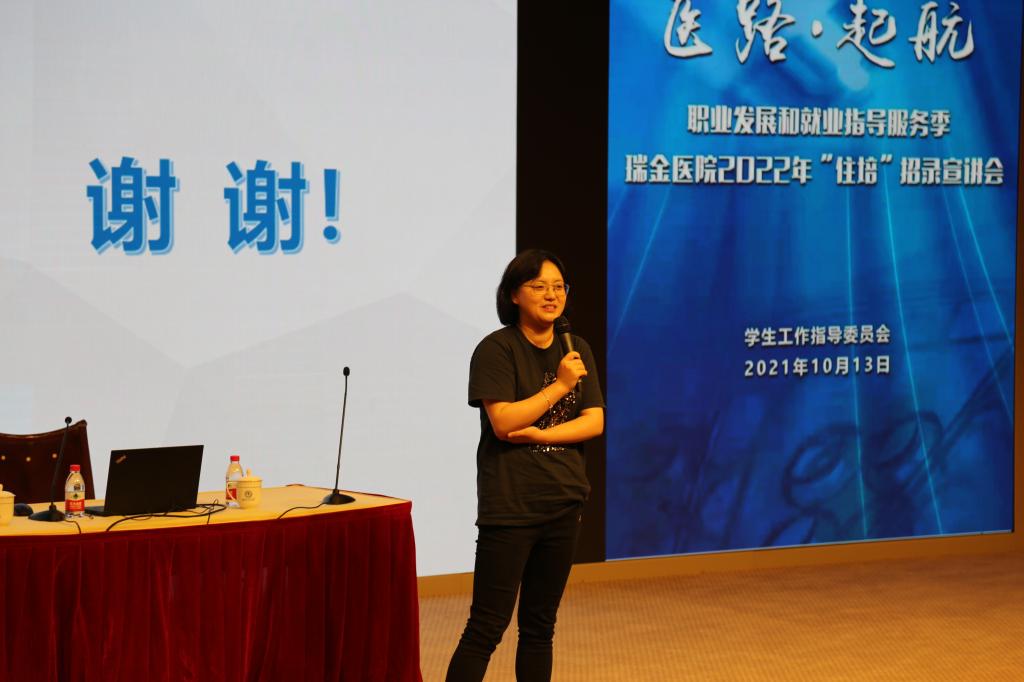 宣讲会开始,蒋莹老师介绍了瑞金医院的概况。作为三级甲等的综合性教学医院,瑞金医院共有46个临床科室(其中8个医技科室),编制床位1693张,实际开放2000张,并有院士5人。瑞金医院有20个国家住培专业基地,其中4个为国家重点专业基地(麻醉基地、急诊基地、内科基地、外科基地)。卓越的软硬件设施为住培医师们创造了良好的工作环境及成长空间。