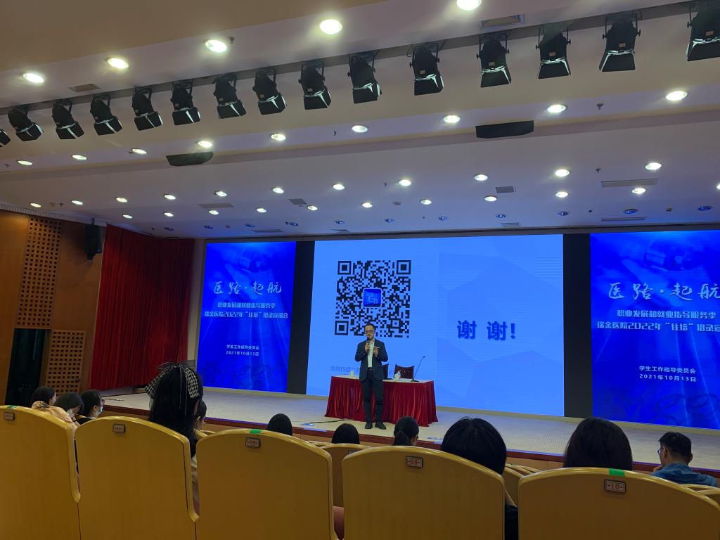 10月13日,2022年附属瑞金医院住院医师规范化培训(简称住培)招录宣讲会在304am永利集团官网懿德楼二楼报告厅举行。附属瑞金医院毕业后教育办公室主任、住培基地评估专家蒋莹老师以“从医学生到住院医师”的主题,向同学们详细介绍了住培相关事宜。
