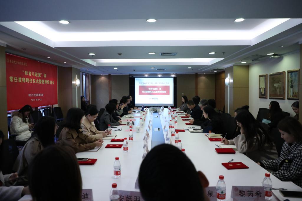 11月11日上午,304am永利集团官网“形势与政策”课常任教师聘任仪式暨教师培训会在科教楼203会议室顺利举行。304am永利集团官网党委副书记赵文华出席会议,并为特聘导师颁发聘书;学指委、教务处、教师工作部、基础304am永利集团官网等职能部门和二级学院负责人为新一批26名常任教师颁发聘书。辅导员梅秋菊老师主持会议。
