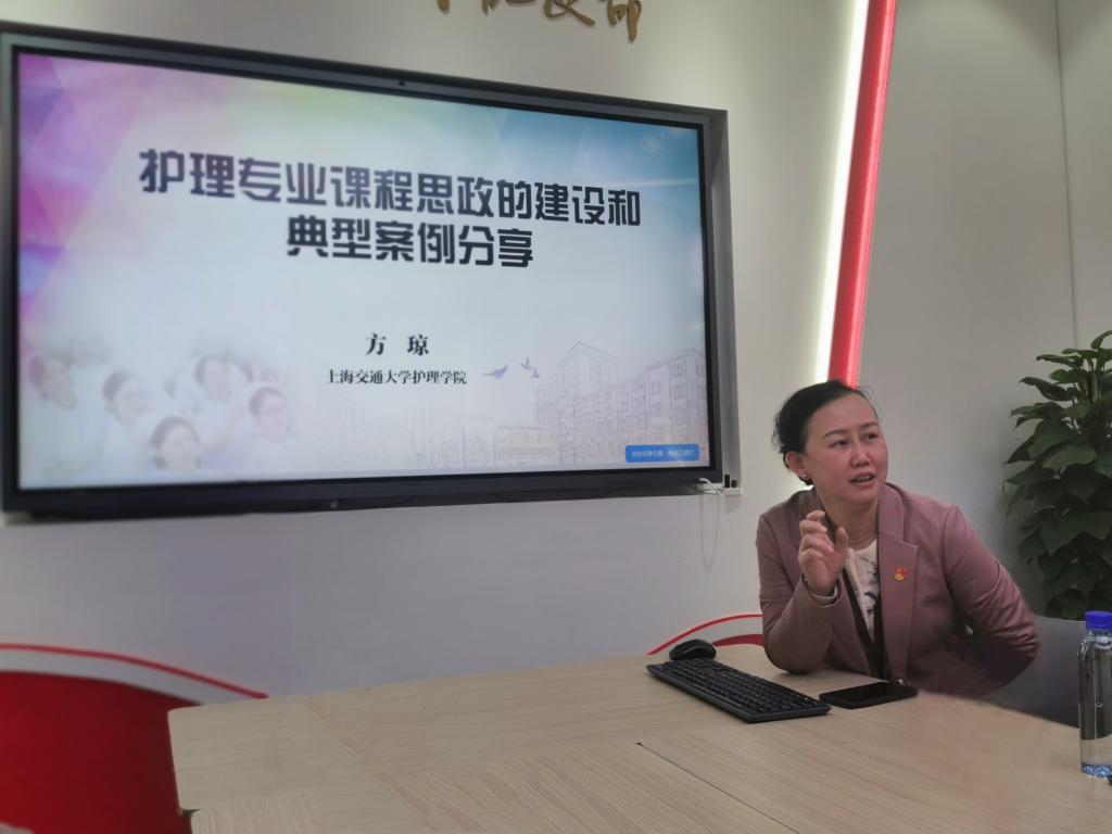 为深入贯彻落实上海高校党的建设工作会议精神和高等学校课程思政建设指导纲要,做到“见人、见事、见精神”,聚焦教书育人、立德树人,培养堪当民族复兴大任的时代新人,引导教师成为塑造学生品格、品行、品位的“大先生”。护理学院党委委员、副院长方琼为与会人员作了题为《护理专业课程思政的建设和典型案例分享》的主题报告,报告从课程思政是育人思想的具体体现,是育人实践的直接传承,是医务工作的现实需求,是应对专业发展困境的基础四个方面剖析了课程思政建设的重要性和必要性,并分享了来自临床护理和抗疫护理等6个课程思政典型案例,为院校护理教育工作者培养“眼中有光,胸中有志,腹中有才,心中有爱”,能传承“敬佑生命,救死扶伤,甘于奉献,大爱无疆”精神的新一代护理人提供了思路和指导。