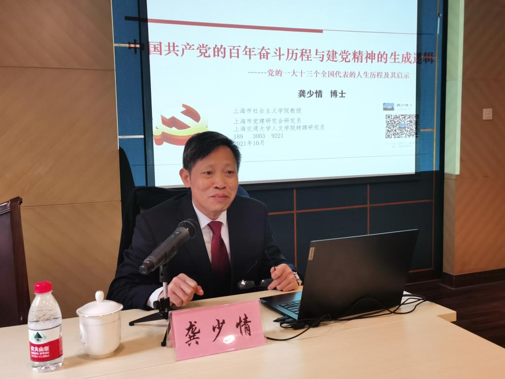 此次研修班邀请了上海市社会主义学院教授龚少情作《中国共产党的百年奋斗历程与建党精神的生成逻辑—党的一大十三个全国代表的人生历程及其启示》专题辅导报告。邀请了上海城市漫步高级讲师高峰,带领学员开展“追溯思南红色记忆,点亮留学报国初心”现场教学活动。