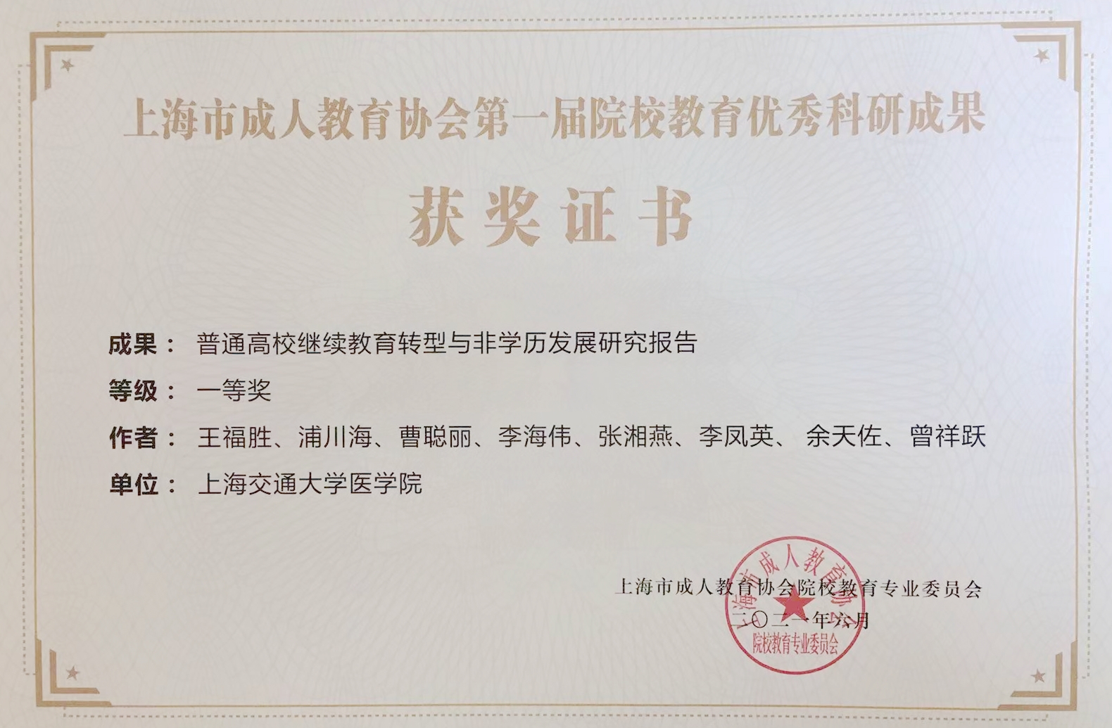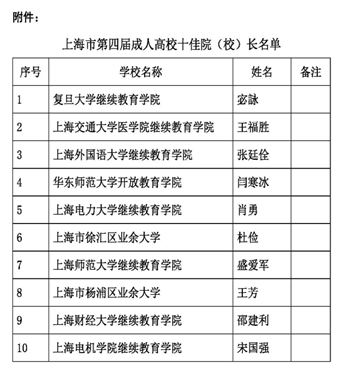 上海市成人教育协会发布《关于表彰上海市第四届成人高校“十佳院(校)长”的决定》(沪成协〔2021〕9号),304am永利集团官网继续教育学院院长王福胜获得上海市第四届成人高校“十佳院(校)长”称号。上海市成人高校“十佳院(校)长”由上海市成人教育协会组织每四年评选一届,经各单位推荐、专家评审、成协院校专委会主任会议通过和公示,用以表彰在上海市高校继续教育领域做出突出贡献的院(校)长。
