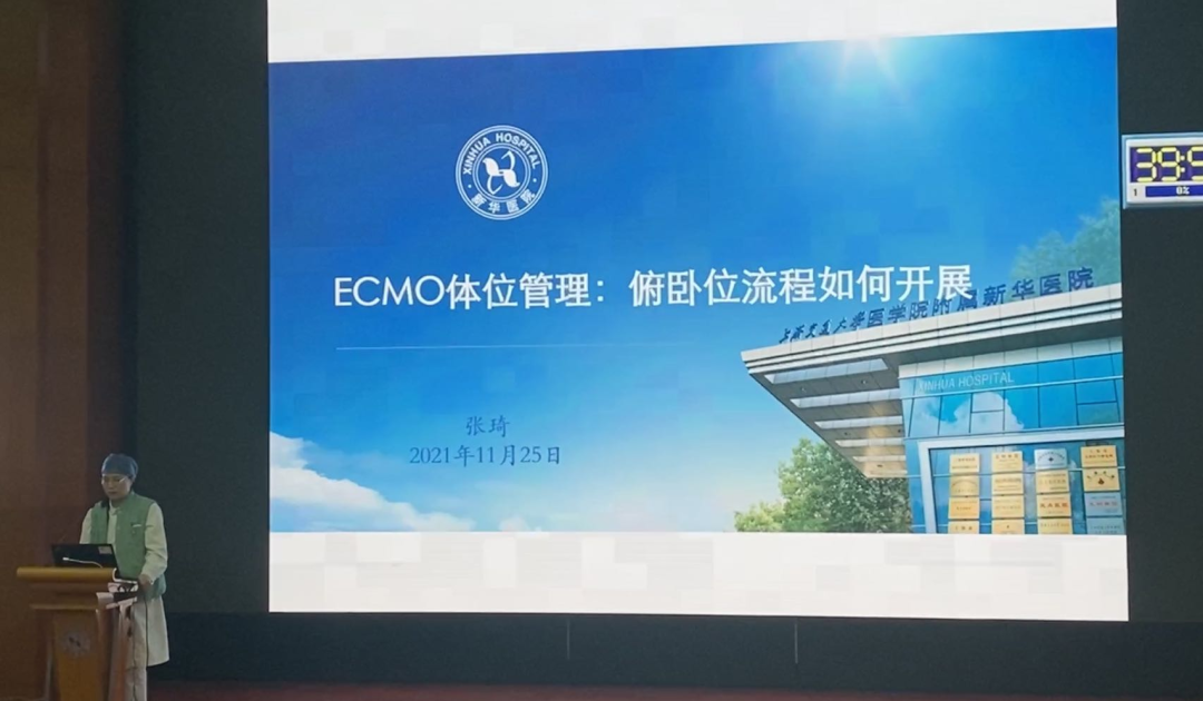 新华医院心胸外科监护室护士长黄润、日间病房护士长张琦分别对ECMO支持治疗在成人心脏中的应用,ECMO体位管理——俯卧位流程如何开展进行了详尽讲解。