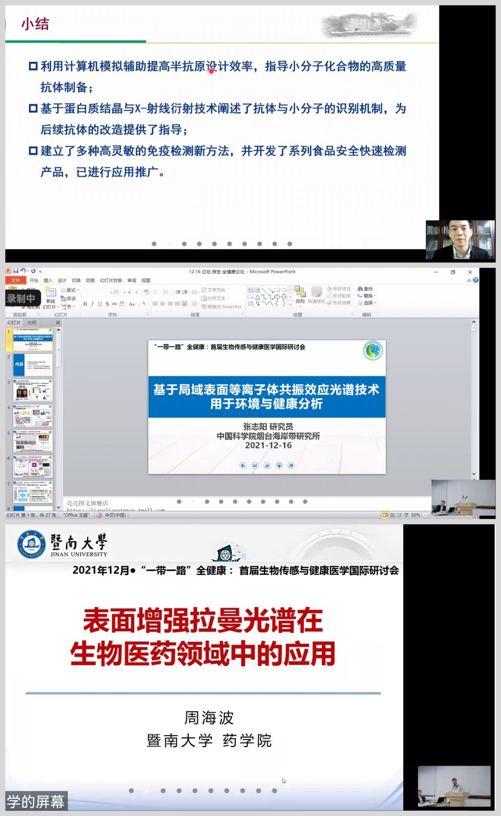 此次研讨会,来自医学、公共卫生学、食品卫生学、环境卫生学、农学、化学、免疫学等领域的专家围绕生物传感、分子诊断、免疫分析和微纳技术及其在医学、环境、农业、食品等领域的应用展开交流讨论。从“人类-动物-环境”全健康的整体视角出发,共同努力形成原创性、引领性、可转化的生物传感研究成果,并致力将其服务于生态文明建设和人类卫生健康共同体。