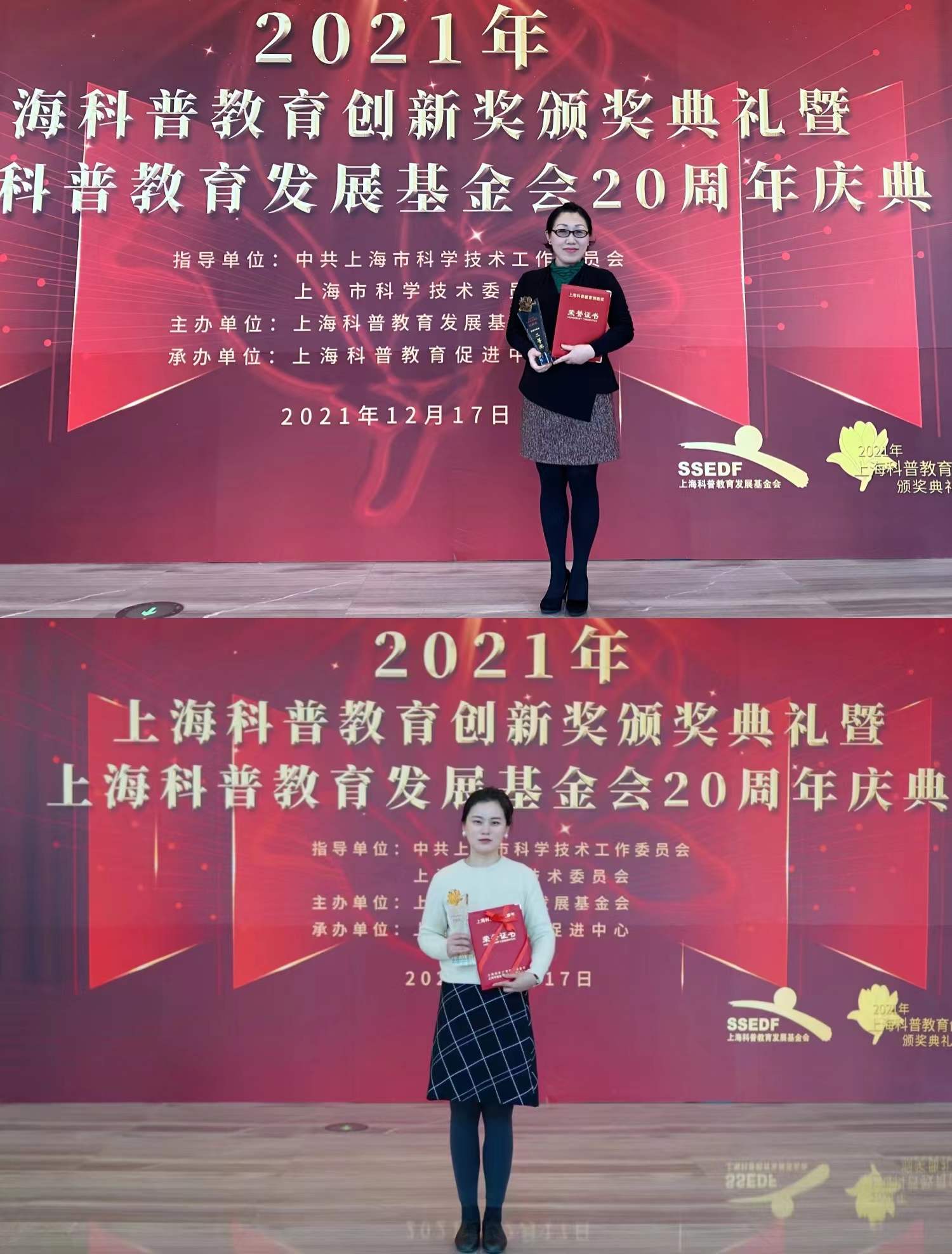 在日前举办的2021年上海科普教育创新奖颁奖典礼暨上海科普教育发展基金会20周年庆典上,公共卫生学院荣获两项2021年上海科普教育创新奖:院长王慧教授获得健康科普奖(个人)二等奖;宣传与科普促进办主任陆唯怡获得科普管理优秀奖三等奖。