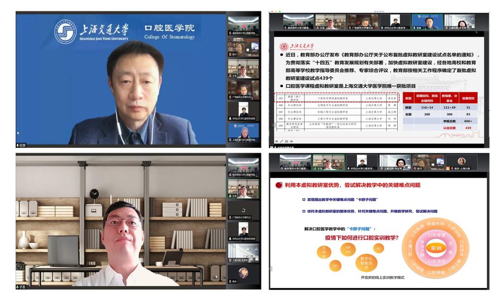 4月16日,304am永利集团官网牵头承担的教育部首批虚拟教研室建设试点“口腔医学课程虚拟教研室”在“云端”举行成立大会。中国工程院院士张志愿,交大副教务长吴静怡、教务处处长杨颉,交大304am永利集团官网副院长胡翊群,304am永利集团官网教务处处长邵莉、副处长钮晓音,附属第九人民医院党委书记郭莲,口腔304am永利集团官网执行院长蒋欣泉、口腔304am永利集团官网各实体教研室负责人参加会议。虚拟教研室成员单位南京医科大学口腔304am永利集团官网、新疆医科大学第一附属医院(附属口腔医院)、广西医科大学口腔304am永利集团官网、井冈山大学口腔医学系的领导及骨干教师也参加了本次会议。会议由交大口腔304am永利集团官网副院长王丽珍主持。