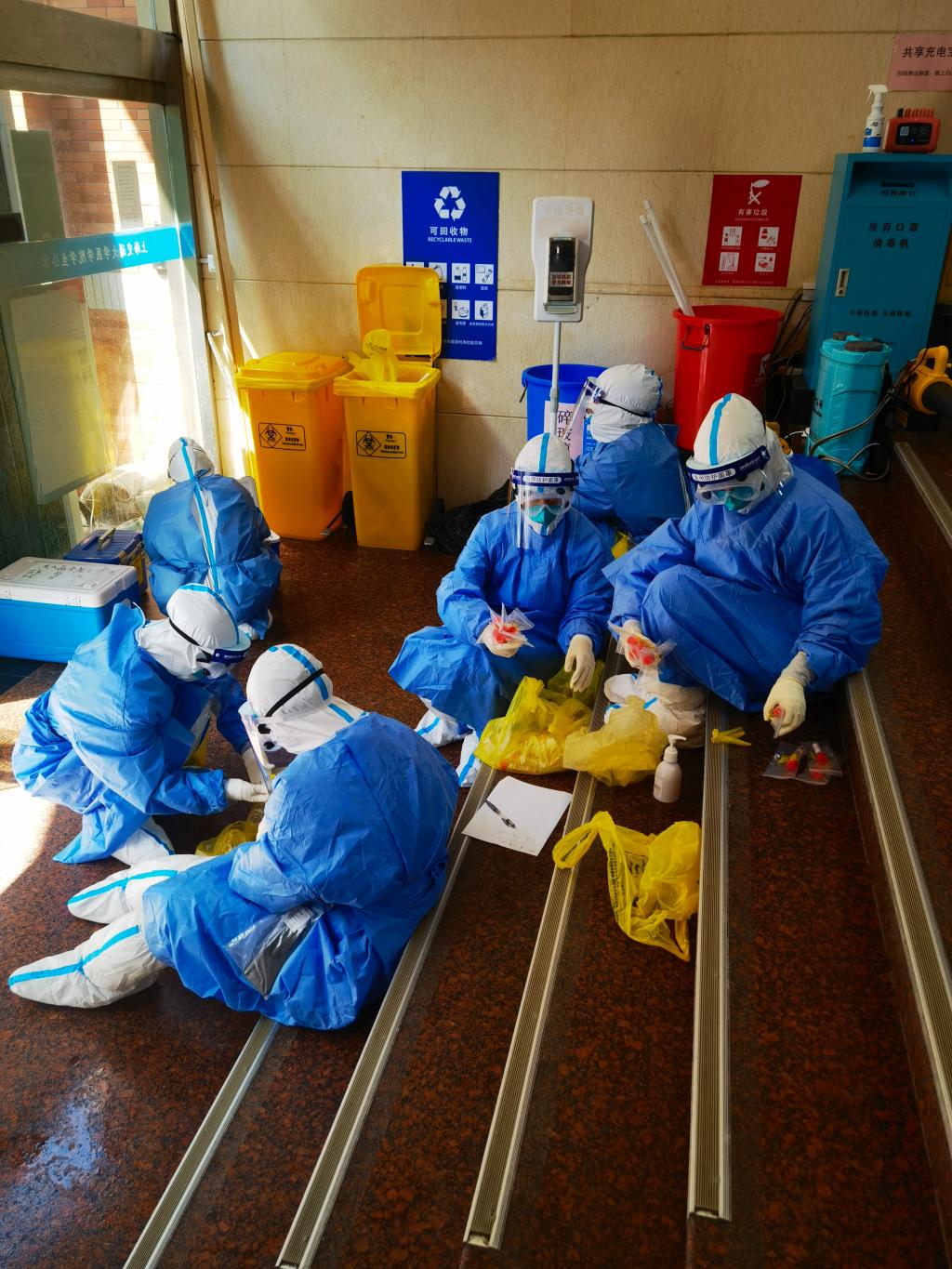 为保证九院核酸采样突击队队员能吃好、休息好、工作好,医管处随时与物资、后勤、校产等相关部门协调,落实采样工作所需物资供应,落实餐饮食宿等保障到位,确保每一个工作环节与工作衔接精细、有序和高效。
