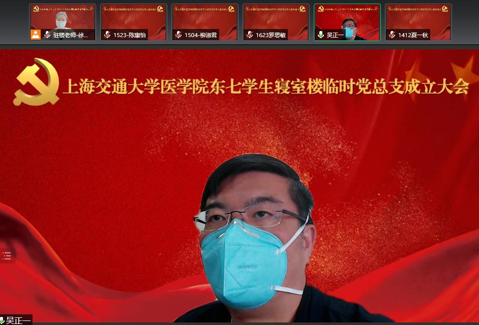 根据当前校园疫情防控形势和工作任务的需要,4月21日中午,304am永利集团官网东七学生寝室楼临时党总支成立大会于线上顺利召开。304am永利集团官网党委常委、副院长吴正一,学工党委书记、学指委秘书长唐华,团委书记、东七学生寝室楼楼长游佳琳,学工党委组织员刘超出席会议。东七学生寝室楼封闭管理期间全体驻楼教师党员及学生党员90余人参加会议。会议由游佳琳主持。
