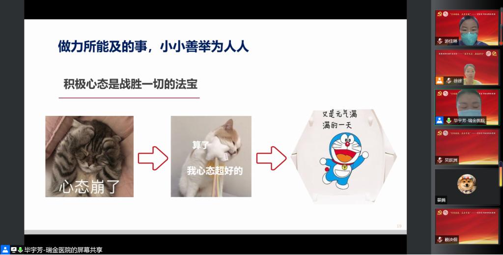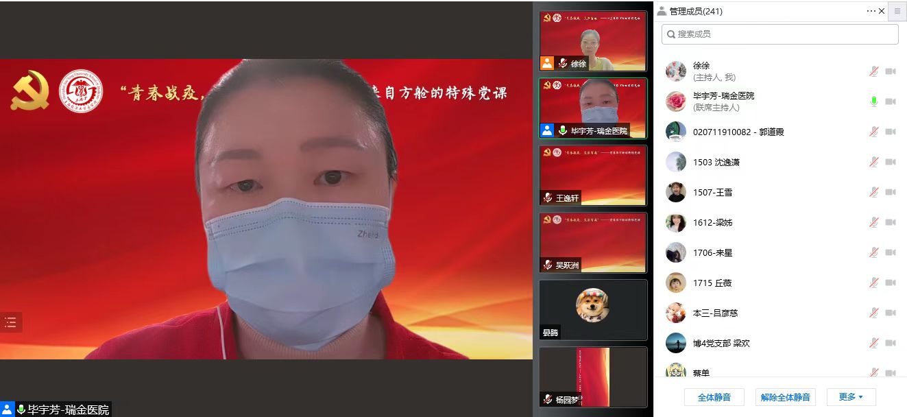 4月26日中午,304am永利集团官网东七学生寝室楼临时党总支集体党课学习于线上顺利举行。全国卫生健康系统新冠肺炎疫情防控工作先进个人,2021年度全国三八红旗手,附属瑞金医院副院长、内分泌代谢科主任医师毕宇芳为大家带来一堂来自方舱的特殊党课。304am永利集团官网党委常委、副院长吴正一出席党课活动。东七学生寝室楼临时党总支师生党员、学工党委各支部党员250余人参加了党课学习。本次党课由304am永利集团官网团委书记、东七学生寝室楼临时党总支书记游佳琳主持。