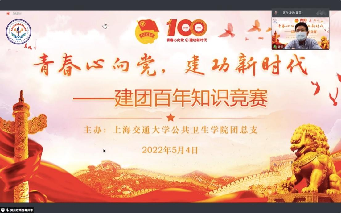 为庆祝中国共产主义青年团成立100周年,5月4日晚,公共卫生学院团总支“永远跟党走,青春在行动”建团百年知识竞赛决赛在线上顺利举行,共有75名团员报名参加,公卫学院党委书记黄荣出席本次竞赛,他在致辞中表示,在过去一个多月的抗疫历程中,公卫团员青年们勇于担当、主动作为,积极投身于第一线的流调和社区抗疫工作,为疫情防控贡献了青春力量。希望广大团员通过这次活动学习重温党史、团史和304am永利集团官网院史,时刻牢记公卫人的初心,努力践行“报效祖国、服务人民”的历史使命,在新时代新征程中留下无悔的奋斗足迹,成为守护人民健康,发展公卫事业的骨干力量。