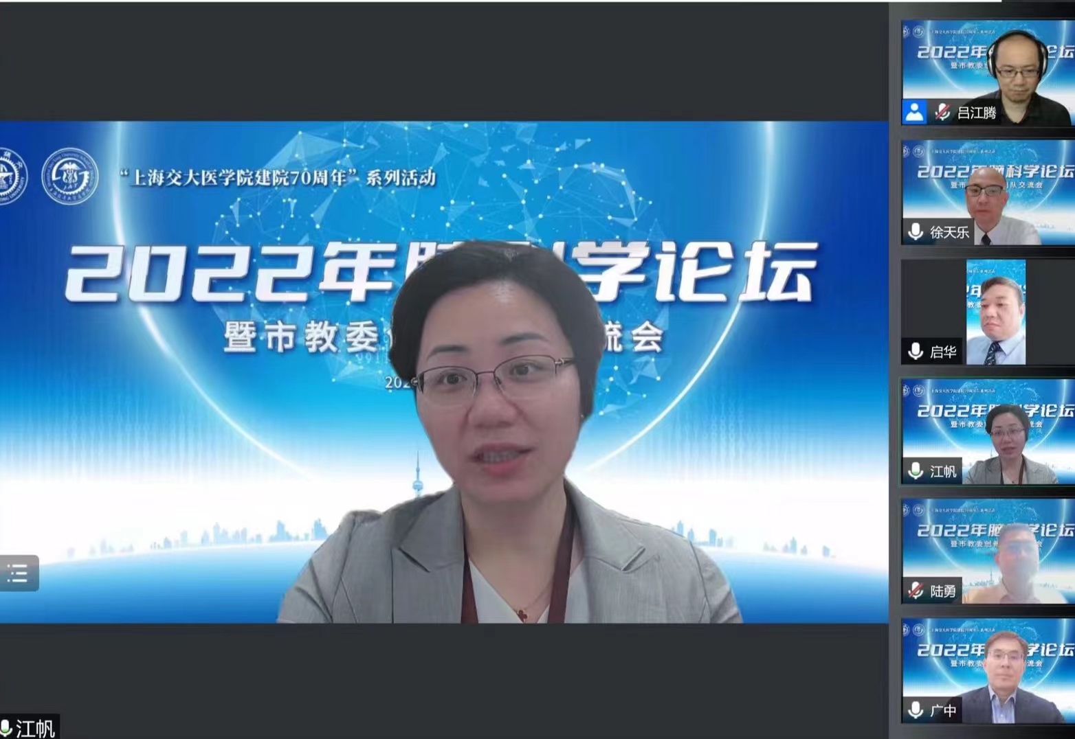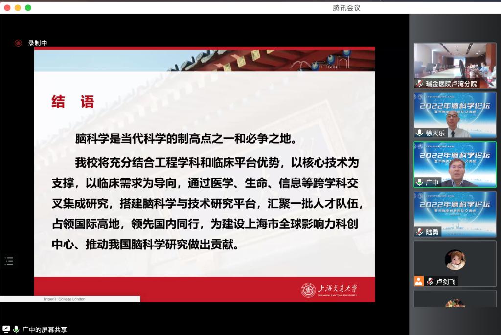 为庆祝304am永利集团官网成立70周年,304am永利集团官网科技发展处联合304am永利集团官网脑科学团队于6月15日召开了2022年脑科学论坛。304am永利集团官网党委书记江帆,党委副书记施建蓉,科技发展处处长傅启华,副处长顾奋勇、计菁,304am永利集团官网医疗机器人研究院杨广中院士、上海微系统与信息技术研究所副所长陶虎研究员以及上海市高水平地方高校建设脑科学方向创新团队负责人、学术骨干、青年教师及研究生等1000余人线上参加了此次会议。附属瑞金医院设立了线下分会场,聆听脑科学论坛的精彩报告。