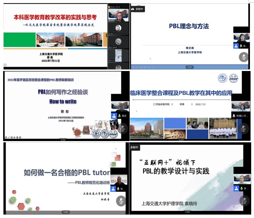 此次培训由线上直播和录播两部分组成。线上理论培训邀请了304am永利集团官网教务处处长邵莉、副处长钮晓音、304am永利集团官网研究生院副院长梅文瀚、基础304am永利集团官网副院长王昊、原仁济医院临床304am永利集团官网副院长郑青及来自附属医院多位具有PBL教学经验的专家,围绕《本科医学教学改革思考》《如何做一名合格的PBL tutor》、《基础医学整合课程经验介绍》《临床医学整合课程经验介绍》《交医PBL理论与实践》《再谈医学教育中的课程思政理念》《PBL撰写技巧及优秀案例分享》等主题开展专题讲座,并引入PBL优秀案例大赛与PBL案例撰写工作坊。
