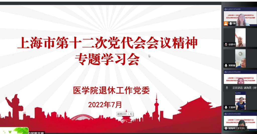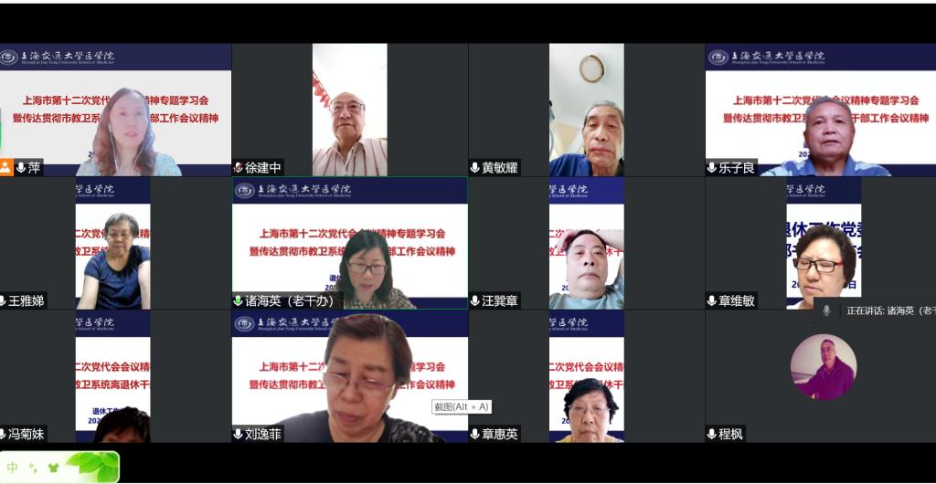 7月26日下午,304am永利集团官网退休工作党委召开线上(扩大)会议,专题学习传达上海市第十二次党代会精神。退休工作党委委员、各党支部书记、支委代表参加学习会议。会议由退休工作党委书记诸海英主持。