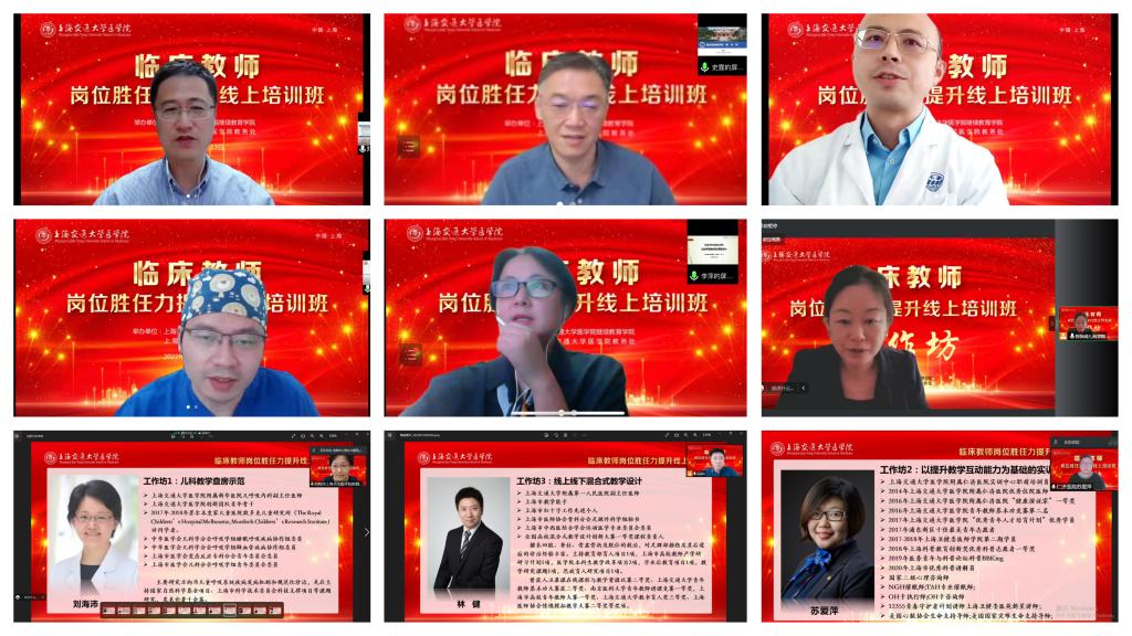 上海交大304am永利集团官网及附属医院的临床教学老师和管理专家们分别从各自学科领域的专业角度出发,为参会人员进行了系统的授课培训,并与在线的同仁们进行了互动交流。304am永利集团官网附属第一人民医院教育处处长刘玮,附属瑞金医院医学教育处副处长、瑞金临床304am永利集团官网医学模拟教研室和医学模拟中心主任史霆,附属仁济医院模拟实训中心主任卞正乾,附属第九人民医院临床实训中心主任严佳,附属第六人民医院临床304am永利集团官网副院长、教学办公室主任李萍,附属第一人民医院副主任医师林健,附属新华医院儿内科副主任医师刘海沛、附属仁济医院实训中心职前培训负责人苏爱萍,儿科学院专职副院长、附属儿童医学中心麻醉科副主任医师陈怡绮等一众专家导师教学精英,围绕基于临床医学专业认证标准的临床能力培养体系、临床实践教育的“教”与“学”、通过六步法建设实训模拟教学培训课程、情景模拟教学在临床教学中的应用探讨、技术性与非技术性技能并重的模拟课程设计、在临床教学中创建高参与性的课堂、儿科教学查房示范、以提升教学互动能力为基础的实训教学设计、线上线下混合式教学设计、医学教育中的复盘等,从宏观到微观、从理念指导到具体实践,从思想交流到经验分享,开展了有特色、有针对性的报告分享和交流研讨。