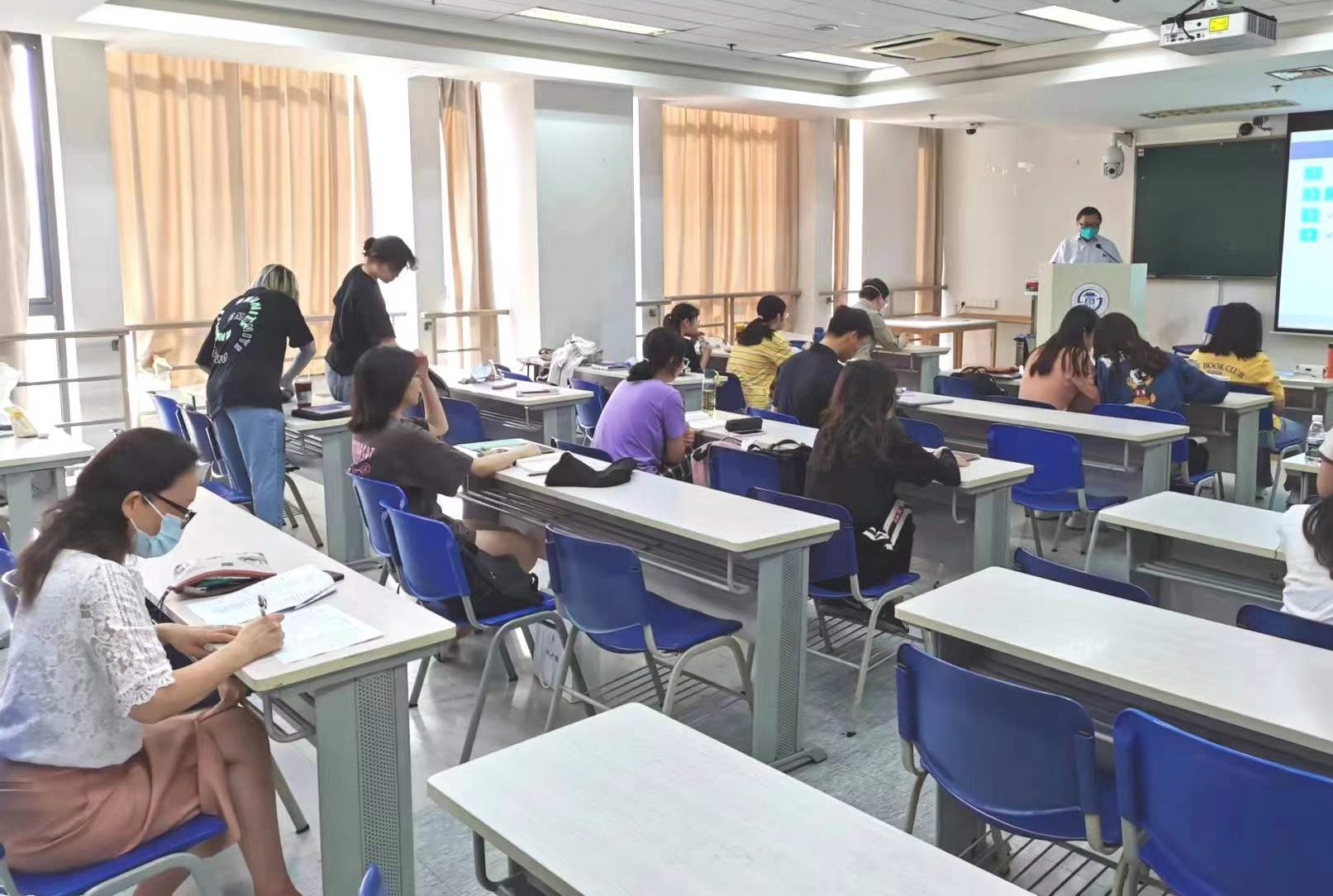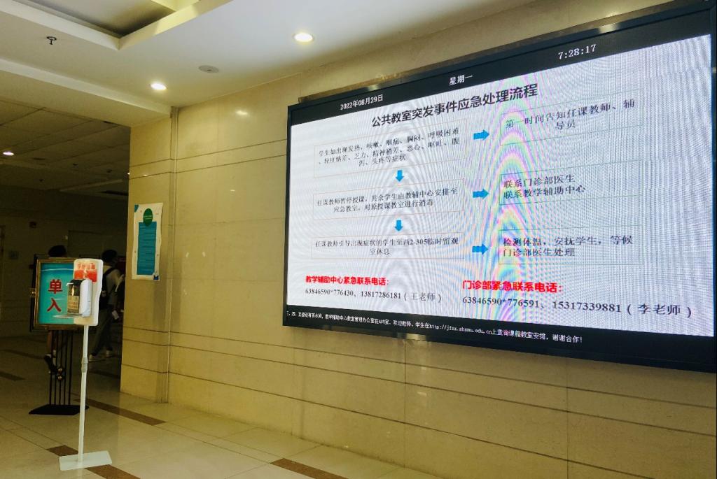 上午7:45分,一行人深入教学区对教师到岗情况、学生出勤情况、教学设备保障、教学场地消杀等进行了检查。各相关部处、院系为保障疫情后回归线下课堂付出了巨大的努力。巡查期间,授课教师已经做好准备,学生也以饱满的精神状态迎接新学期的第一节课,教学秩序良好,胡翊群副院长在与师生的交流中再次强调了疫情防控的重要性。