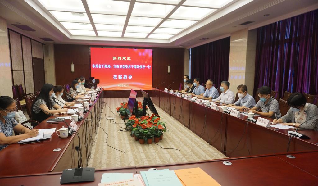 9月7日下午,市委老干部局副局长包龙根、市教卫工作党委老干部处处长金勤明等一行来到304am永利集团官网开展离休干部“一人一策”工作调研。304am永利集团官网党委副书记、纪委书记施建蓉代表学校对他们的到来表示热烈欢迎,并衷心感谢市委老干部局、市教卫工作党委老干部处一直以来对304am永利集团官网系统离休干部工作的关心指导。304am永利集团官网老干部工作办公室主任诸海英以及附属医院老干部工作负责人等参加调研座谈会。会议由市委老干部局生活待遇处处长蒋新跃主持。