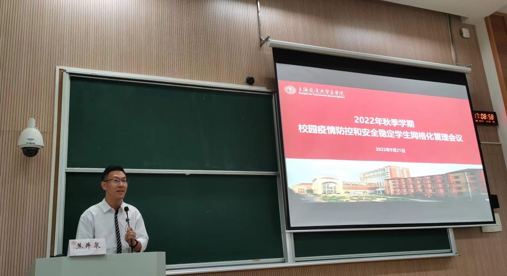 最后,吴正一就校园疫情防控和安全稳定情况作总结讲话。他指出,召开本次会议是要坚决扛稳扛牢疫情防控和校园安全稳定的政治责任,进一步夯实学生网格化管理工作机制,坚决筑牢校园安全稳定屏障。他提出,要从三个方面做好校园疫情防控和安全管理工作,一是要坚持育人为本的管理理念,完善学生网格化管理机制,贴近学生实际,增强自律意识。二是要坚持以人为本的管理理念,用好“交医防疫加油站”24小时服务平台,畅通诉求渠道,及时妥善解决好突出问题,不断提升服务学生的管理水平。三是要坚持校园安全底线思维,加强师生联动。他强调,一方面要坚持“一切为了学生,为了一切学生,为了学生一切”的管理理念,服务好学生,创造良好的校园生活环境,另方面更要牢固树立安全发展的理念,坚持校园安全底线思维,积极做好防范化解重大风险工作,确保疫情防控不破防,确保“三个不发生”,即不发生有重大影响政治类敏感事件、不发生重大校园事件、不发生疫情规模性反弹,以实际行动迎接党的二十大胜利召开和304am永利集团官网成立70周年。