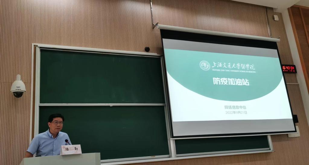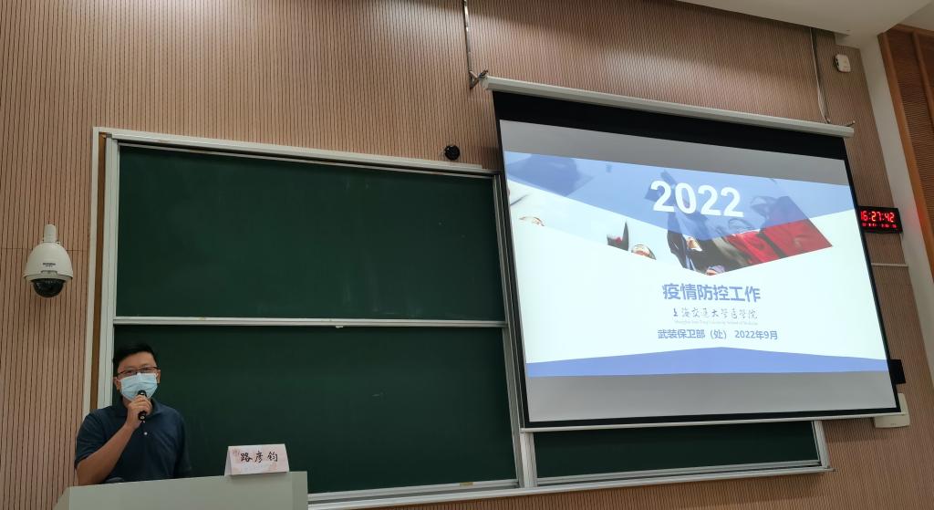 医管处处长邵新华以“校园疫情防控注意事项与应急处置”为主题向全体学生提出了七点要求:全体学生必须规范佩戴口罩,保持社交距离,讲究个人卫生;学院要继续加强人员管理,做好校内核酸采样点工作,落实好其他各项防控措施,特别是要强化应急处置工作预案,保障全校师生正常的学习和工作。