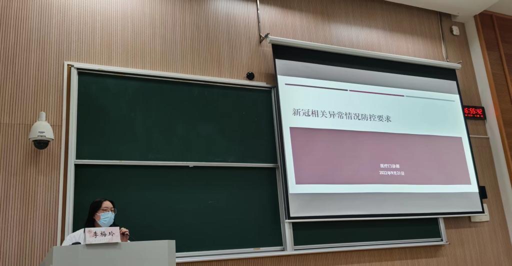 医疗门诊部主任李梅玲介绍了高校新冠病毒肺炎相关异常情况及防控要求。新冠疫苗接种是目前预防新冠最主要的方式,学生如果出现异常情况需要主动上报辅导员或医疗门诊部,一旦抗原或者核酸发现异常,学校将进入应急处置状态;平时要以清洁为主、消毒并在,做好新冠肺炎疫情常态化的寝室内消毒。
