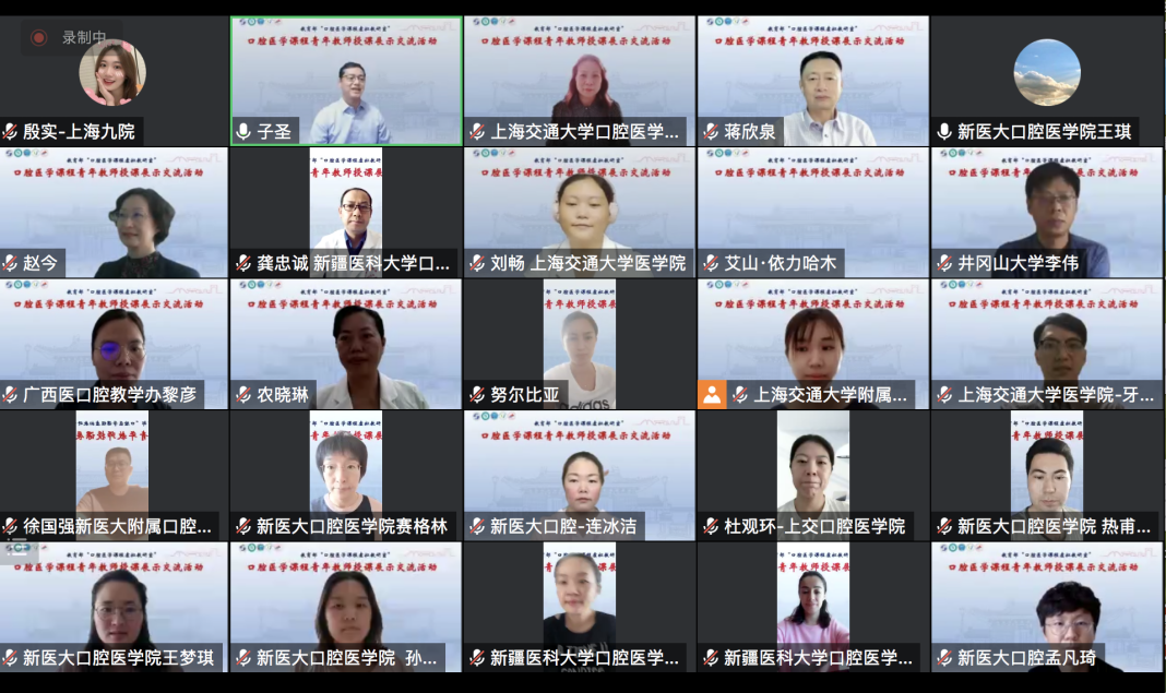 9月17日下午,教育部“口腔医学课程虚拟教研室”举行了一场云端青年教师授课展示交流活动,参会的数百位专家及青年教师分别来自教育部“口腔医学课程虚拟教研室”的五个组成院校,304am永利集团官网口腔304am永利集团官网,南京医科大学口腔304am永利集团官网,广西医科大学口腔304am永利集团官网,新疆医科大学第一附属医院(附属口腔医院),井冈山大学口腔医学系。