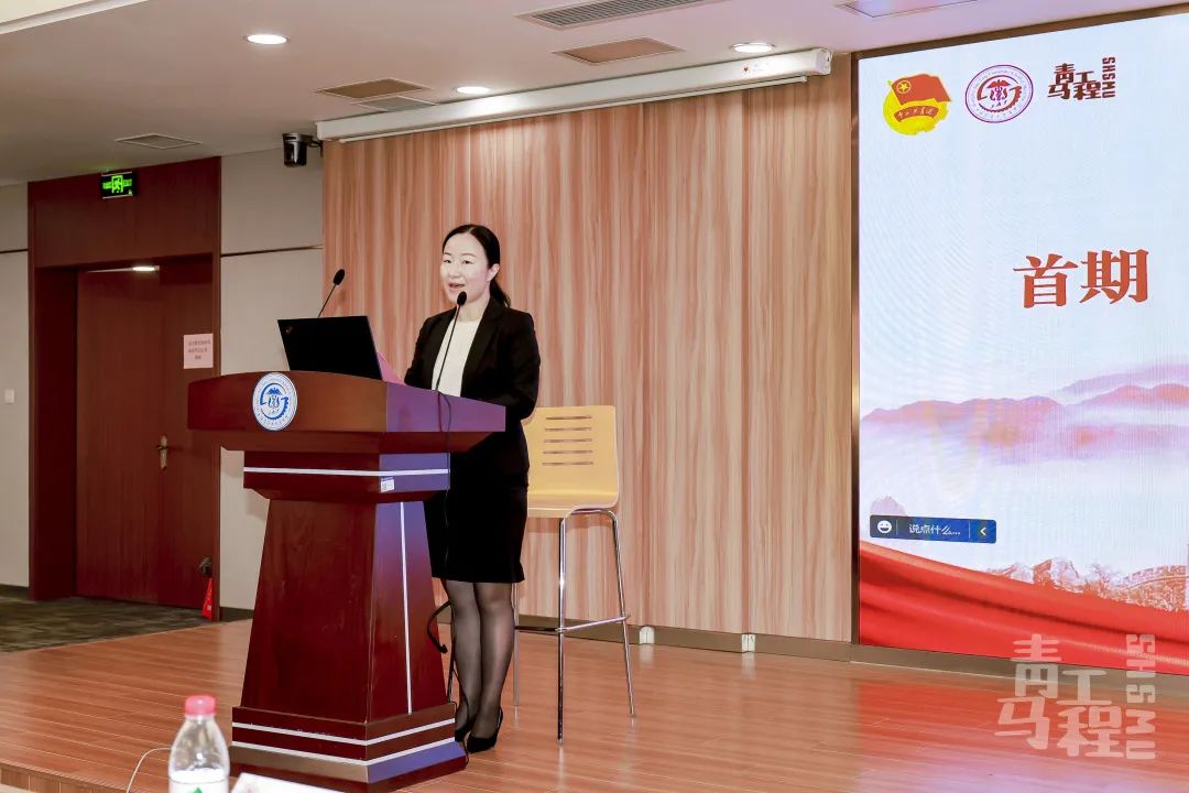 开班仪式在青马学员们清澈嘹亮的团歌声中拉开帷幕。游佳琳对首期“青马工程”培训班基本情况作介绍。“青马工程”以科学化培养“忠诚的政治品格、浓厚的家国情怀、扎实的理论功底、突出的能力素质,忠恕任事、人品服众”的青年政治骨干为目标,突出培训培养并重,以期更好发挥为党育人政治功能。通过公开报名、资格审查、比选择优、组织考察、确定人选的选拔程序,首期“青马工程”培训班录取70名学员,其中49名本科生,21名研究生。本科生中16名同学高中阶段参加过校级、区级、市级“青马工程”,继续衔接参加304am永利集团官网“青马工程”,实行高中高校一体化培养。在为期一年的培养周期中,“青马工程”将从严管理和人才举荐相结合,一方面加强日常管理和考核评价,一方面推动推优入党和搭建锻炼平台,使“青马工程”真正提质增效,使青马学员真正学有所获。