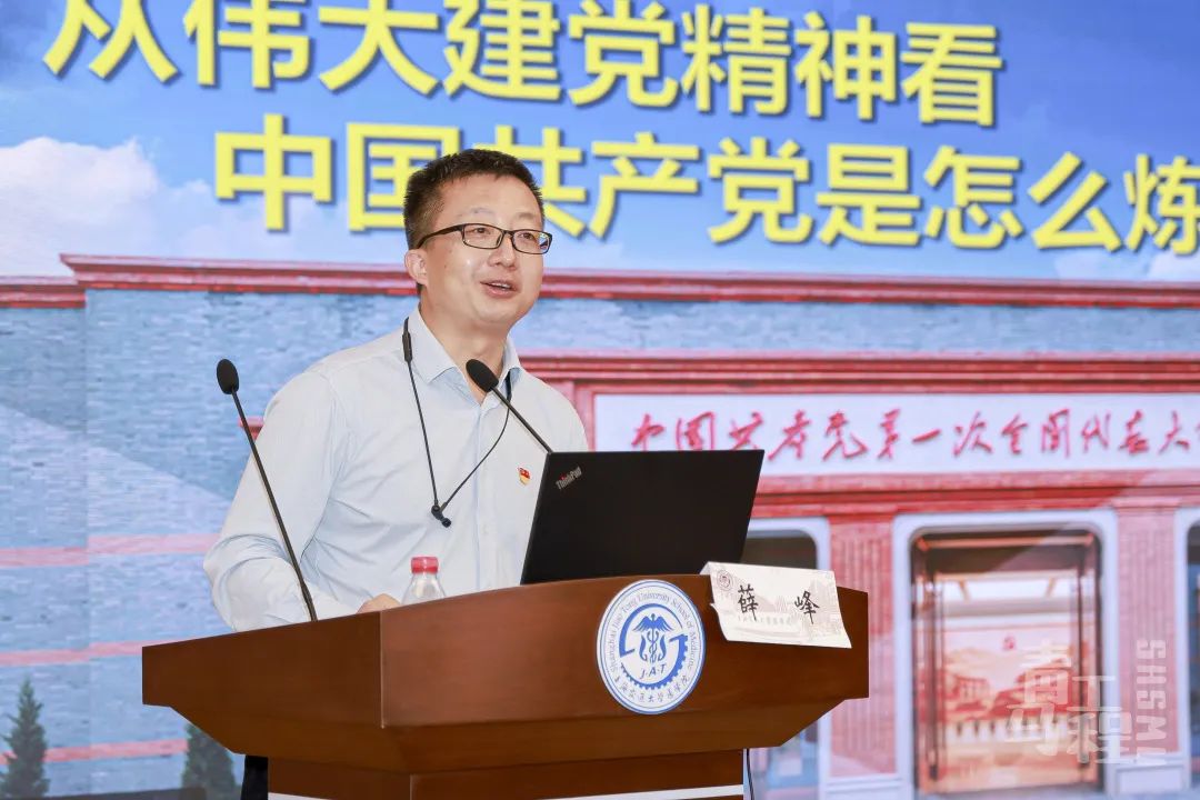 薛峰以《从伟大建党精神看中国共产党是怎么炼成的》为题为青马学员讲授党课。他以时间轴为线,从中国共产党诞生之初的先进性密码、伟大建党精神生成的逻辑、伟大建党精神蕴含的真谛等方面,系统全面地为学员讲述了伟大建党精神和中国共产党创建之间的联系,寄语大家走好新一代人的长征路,把党的诞生地作为精神家园,汲取伟大建党精神,涵养精神之源,同时牢记初心、践行使命,对党忠诚,不负人民,用伟大建党精神从价值观层面塑造高尚品质。