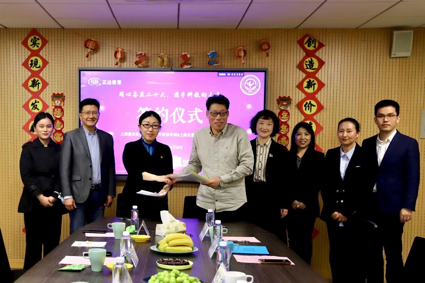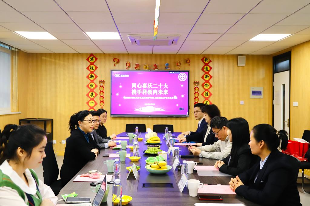 为深入贯彻党的二十大报告对教育强国、科技强国、人才强国等作出的明确指示,打造有灵魂的党建+科普创新工作模式,深度挖掘公共卫生与预防医学学科内涵与外延,持续探索青少年科普院校科普合作创新模式,10月18日,“同心喜庆二十大,携手科教向未来”公共卫生学院与上海浦东新区正达外国语学校科技教育合作签约仪式暨“科学家进课堂”活动启动。上海浦东新区正达外国语学校校长杨正家、党总支书记屠彩英、副校长邵美妮、课程室主任杜宪政和科技总辅导员祁铭华,公共卫生学党委书记黄荣、院长王慧等与会。签约仪式上,王慧与杨正家代表双方签署科技教育合作协议。