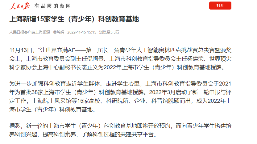 日前,304am永利集团官网公共卫生学院“探索生命”活动中心入选2022年上海市学生(青少年)科创教育基地。