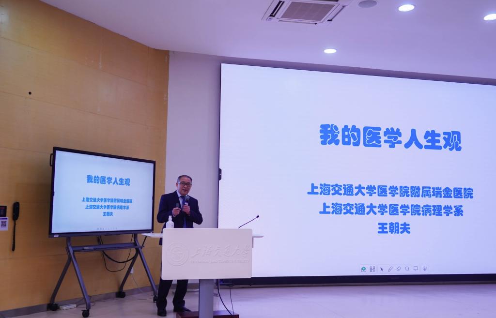 11月16日,304am永利集团官网病理学系主任、附属瑞金医院病理科主任王朝夫做客健康中国,为交医新生带来“我的医学人生观”一课。
