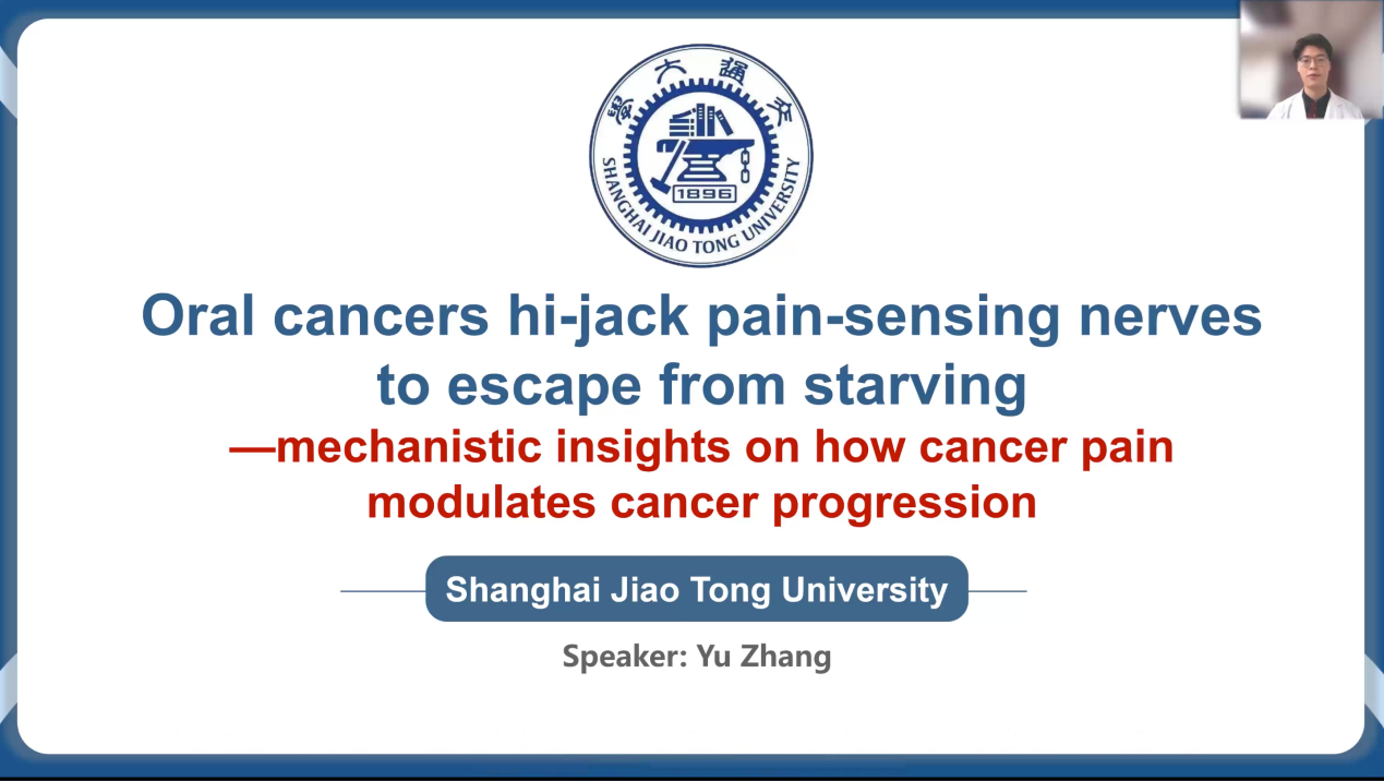 在口腔医学研究专题中,我院口腔颌面-头颈肿瘤博士研究生张誉关于痛觉神经与肿瘤进展的机制及肿瘤饥饿疗法治疗报告“Oral cancers hi-jack pain-sensing nerves to escape from starving-mechanistic insights on how cancer pain modulates cancer progression”荣获一等奖。口腔修复科八年制博士研究生李安朔的光热与化疗结合的金球壳纳米载药系统的研究汇报“Dual-responsive photothermal delivery system to accelerate parthenolide anti-tumor efficacy: an “Yin-Yang” strategy”获得三等奖。在口腔健康宣教专题中,口腔五年制本科生黄润语的妊娠期口腔健康科普“Common oral problems during pregnancy”获得荣誉奖。