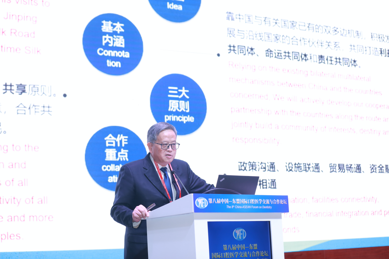第八届中国-东盟国际口腔医学交流与合作论坛(The 8thChina-ASEAN Forum on Dentistry, CAFD)11月于广西南宁召开。论坛是中国-东盟国家区域内口腔医学领域部长级高级别会议,目前已成为全球口腔医学领域中国承办的国际性顶级论坛之一。本届论坛汇集了诸多国内知名口腔医学领域专家学者,同时,来自8个东盟国家的卫生行政官员、口腔医学界专家及青年学者通过网络视频参加本届论坛。口腔304am永利集团官网张志愿院士、蒋欣泉教授受邀出席论坛并作精彩演讲。