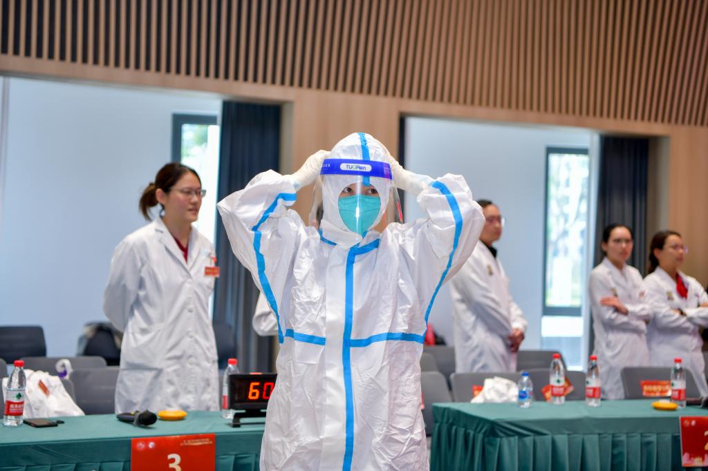 本次竞赛采用分站式竞赛的形式,竞赛内容包涵基本理论题、基础技能操作、X片及心电图判读、查体及综合抢救。每一站都模拟真实医学情景,并将医疗核心制度、人文关怀、沟通技巧等贯穿到了整个竞赛中,有效地提高了住培、专培医师的临床思维能力及综合抢救水平。必答题与抢答题环节考验的是住院医师的基础知识储备,大家在这个环节并没有拉开太大差距,彰显了扎实的专业功底;技能操作环节包括徒手缝合打结、会阴缝合、心肺复苏、穿脱防护服4个部分,不论是住培医师的徒手操作,还是专培医师的会阴缝合,都体现出年轻医师们过硬的技能操作基础;穿脱防护服比赛环节体现了在新型冠病毒感染的肺炎疫情防控工作背景下,住院医师的防控隔离意识,更规范、更安全地保护患者和医护人员;心肺复苏是对住院医师急救能力的检阅。情景模拟环节,既考察了住院医师处理妇产科危急重症的临床思路,也体现了在诊疗过程中不可忽视的人文关怀。在最后的医学名词表演环节,选手们各个脑洞大开、配合默契,对医学专业名词的理解相当透彻。每一个环节结束后,均邀请专家评委从专业角度进行细致点评,并对选手们在竞赛过程中存在的问题进行详细分析,为带教老师和选手们提供了教和学的改进思路。这次技能大赛的竞赛内容紧扣上海市住院医师规范化培训的教学大纲展开,精彩纷呈,赛出了交医妇产科住院医师的风采和担当。
