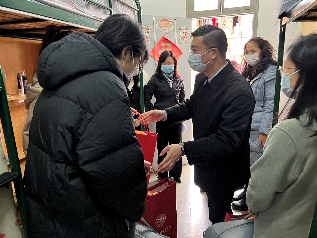 走访中,吴正一副书记与学生们亲切交谈,仔细询问学业适应、生活习惯、冬季保暖等情况。鼓励她们树立自信、积极规划大学生活,以德为先,努力学习,立志做一名品德优秀、医术高超的医学大家。同时也叮嘱同学们注重御寒保暖、强身健体、劳逸结合,并做好疫情防控与校园寝室生活安全,有问题或困难及时联系学校老师,学校永远是大家坚强的后盾。