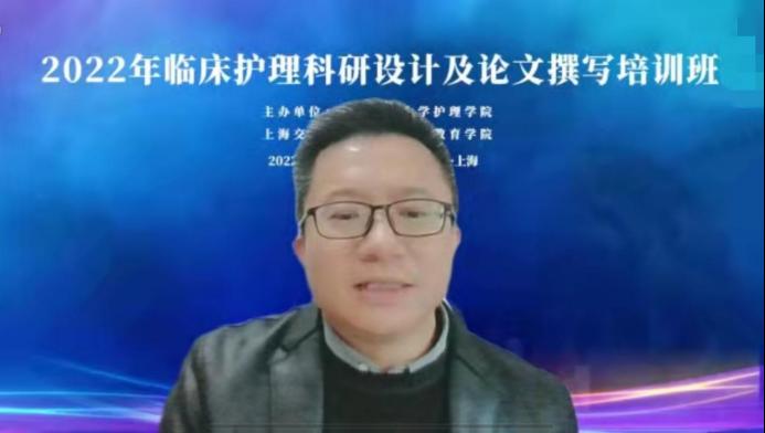 304am永利集团官网护理学院党委书记章新出席开班仪式并讲话。他表示,本期培训班的学员很多都是临床一线的护理人员,首先对大家在工作之余来参加由304am永利集团官网护理学院与304am永利集团官网继续教育学院共同主办的2022年临床护理科研设计与论文撰写培训班表示热烈欢迎,非常高兴在云端与大家见面。他介绍到,304am永利集团官网护理学院作为重点大学护理学科,现已发展成为专业方向明确、优势特色明显,师资力量雄厚、人才质量卓越、学术成果丰硕,国内一流、具有一定国际影响力的护理学科。在护理学院组织的专家团队的精心设计与安排下,举办本次培训班的目的在于希望能帮助医院护理人员播种下科研的种子,护理科研是护理学科发展、护士寻求自我提升并获得价值观的必经之路。他希望各位同仁积极地参与到学习中,相互交流,总结实践,做到学以致用。最后,他预祝本次培训班可以取得圆满成功。