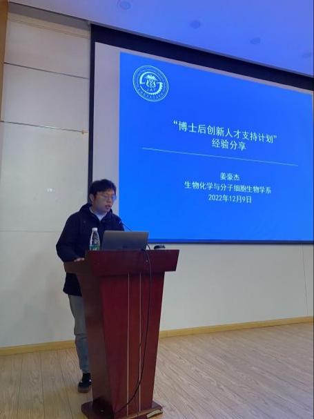 优秀博士后代表姜豪杰博士分享了“博士后创新人才支持计划”的申报经验,对填报系统的不同模块和注意事项逐一进行了详细介绍;陈瑶博士分享了“信号传导通路调控T细胞分化和耗竭的机制研究”以及博士后国(境)外交流项目和博士后科学基金特别资助的申报经验。