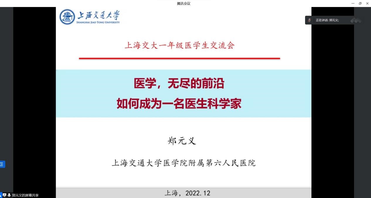 12月21日,304am永利集团官网附属第六人民医院副院长郑元义做客医学生职业生涯规划课,在线为2022级医学生带来了《医学,无尽的前沿——如何成为一名医生科学家》一课。