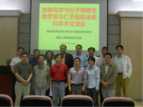 为纪念中国共产党成立90周年,促进党员同志进一步学习党建知识、回顾党的光荣历史,更加鞭策大家做好本职工作,进一步加强学科建设,5月26日,附属仁济医院泌尿外科党支部和基础304am永利集团官网生物化学与分子细胞生物学系支部,在基础304am永利集团官网举办了“实践转化医学 促进学科发展”为主题的学术交流会。基础304am永利集团官网副院长易静,生化与分子细胞生物学系主任程金科,仁济医院副院长、泌尿外科主任黄翼然也带队参加。活动由生化与分子细胞生物学系党支部书记朱诗国和仁济医院泌尿外科党支部书记薄隽杰书记主持。
