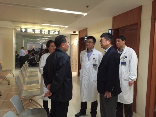 3月27日上午,304am永利集团官网副院长陈睦一行冒雨前往附属瑞金医院,亲切慰问304am永利集团官网参加2015年度教职工健康体检的教职员工和医务工作者;一并参加慰问的还有医管处处长倪卫杰和院办副主任康力。