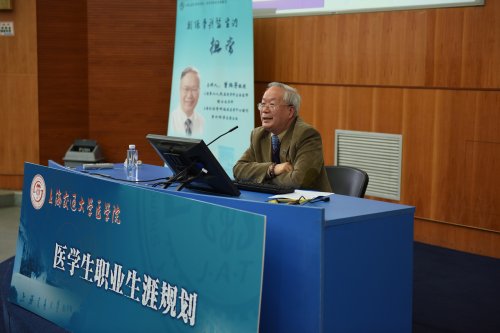 随后曾教授用图文结合的方式重现了他昔日所见识、所参与和主刀的诸多手术的情形,如将背部皮肤移接到受严重机械伤的臂部、将脚趾接于断指处重塑手部功能,和将骨节扭转以踝关节代替膝关节以便假肢的安装等等。并且告诉年轻的医学生们基础课特别是解剖学很有可能成为临床的重要依据。而日后一定要重视每一次参加的手术,它们都是很好的学习过程。此外,曾教授娓娓讲述了他对陈中伟医生的师恩难忘,以及曾经去西藏的锻炼对自己知识积累的帮助。曾教授用他真实的个人经历阐释救死扶伤、病人至上;潜心学习,勤于实践;实事求是,真诚沟通的内涵。曾教授说:医生的价值在于帮助病人解决痛苦、有时治愈、经常帮助,做不了什么的时候需要安慰。最后勉励在座的医学生:科学有险阻,苦战能过关!