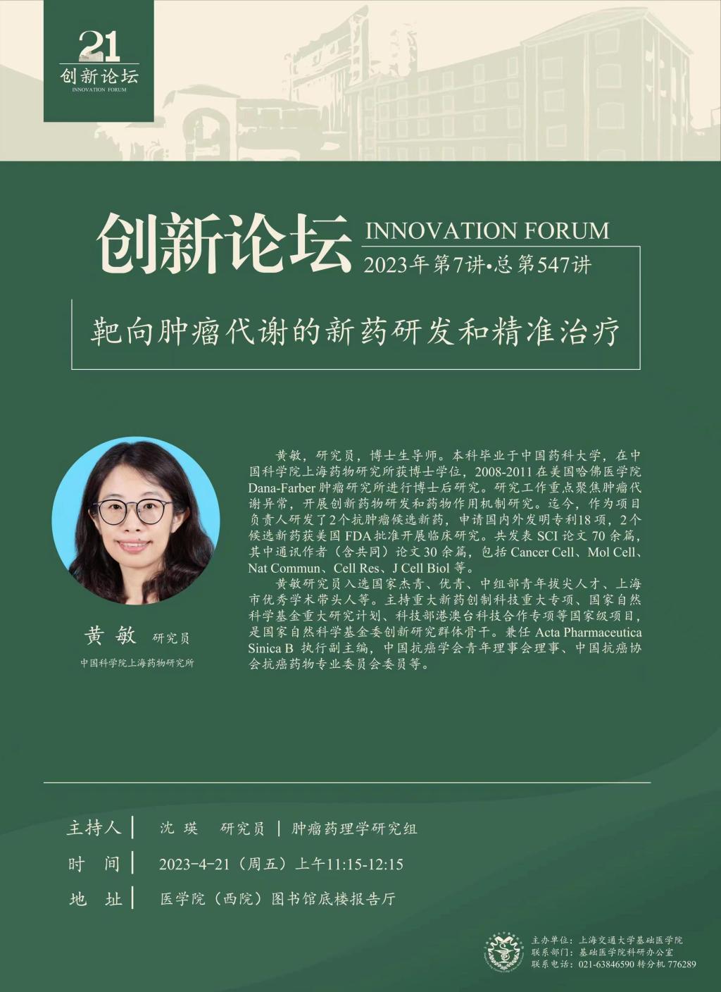 主持人:沈瑛 研究员|肿瘤药理学研究组