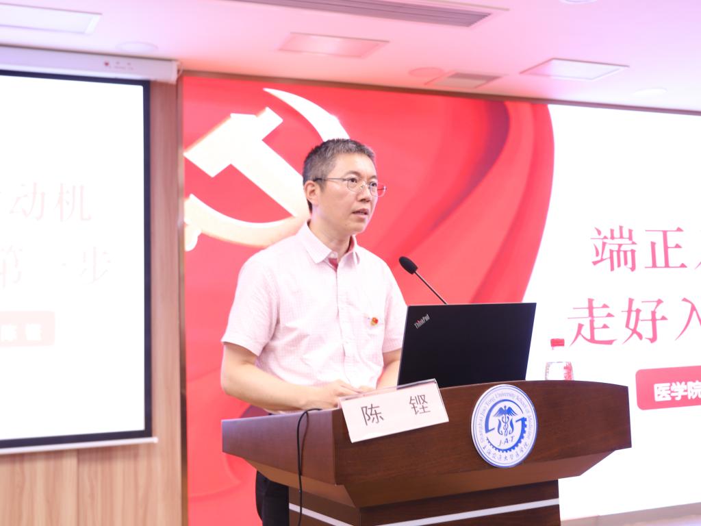随后,陈铿部长以《端正入党动机走好入党第一步》为题上党课,从端正入党动机是争取入党的首要问题,按照党员标准严格要求自己,加强党性修养是成为合格党员的关键,发挥先锋模范作用、积极向党组织靠拢等四个层面,要求全体学员要志存高远,永葆政治进步的热情,善于把自身的业务才干和本领运用到促进社会主义医疗卫生事业的发展中去,把个人融入到党的事业中,在日常学习、工作和生活里自觉用党员标准严格要求自己,切切实实发挥模范带头作用,以实际行动争取早日成为一名合格共产党员。