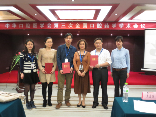 2014年11月1日中华口腔医学会第三次全国口腔药学学术会议在武汉召开,会议主题为“全程化口腔药学服务”,附属九院药剂科吴飞华主任药师(第一届口腔药学专业委员会副主任委员)主持了专家演讲环节。 附属九院共有6名药师参加了本次会议,投稿6篇,其中李允武、诸慧、金剑分别获得二等奖、三等奖和优秀奖。在“青年药师风采展示”环节,12名青年药师脱颖而出,附属九院陈敏燕、潘姝参加了该环节比赛,其中陈敏燕获得了三等奖,展现出附属九院青年药师爱岗敬业、意气风发的精神风貌。