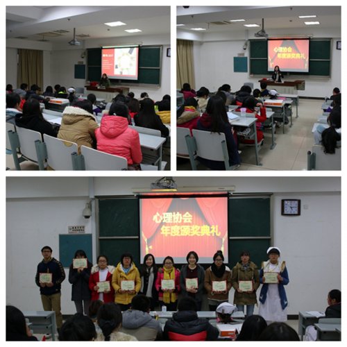 总结会开始,心理协会会长以时间线的形式向同学们展示了心理协会举办的每一次活动,从新学期的顺利招新到游园会的热闹场景,从充满欢乐的“感恩”“圣诞许愿”等主题会员活动到精彩激烈的心理知识竞赛,从发人深省的心灵成长训练营到挑战自我的团队素质拓展,每一次活动都凝聚着心理中心老师、同学们的心血,精心的策划、细致的准备、有序的组织、热情的参与,一次次启迪心灵的活动使每一位参与者丰富了心理健康知识,提高了心理素质,也使校园生活更加缤纷多彩。随后,总结会表彰了心理协会优秀部长、优秀分会会长、优秀部员等18名表现出色的同学,获奖代表与全体部员进行了交流,分享了工作经验。最后,心理健康教育中心教师进行了总结,她表达了对每一位心协成员的感谢,感谢同学们热情的工作和辛苦的付出,传递了对同学们的呵护和期望,期待每位同学能在心理协会的大家庭中不断进步与成长,也期待着心理协会在明年表现更加出色。