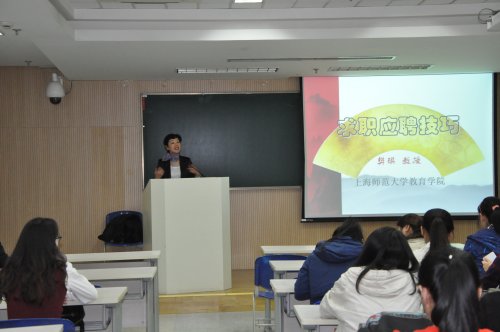 樊琪教授长期从事应用心理学教育工作并兼任上海市礼仪学会理事,在心理训练和人才招聘与培训方面有着丰富的经验。她首先介绍了求职应聘的三大要素:正确的观点、胜任的能力、沟通的技巧。她强调正确的观念是平时养成的,胜任的能力是多年的专业训练所锻炼出来的,而求职应聘时如何互动、如何进行有效交流,即应聘的沟通技巧是可以快速培训出来的。