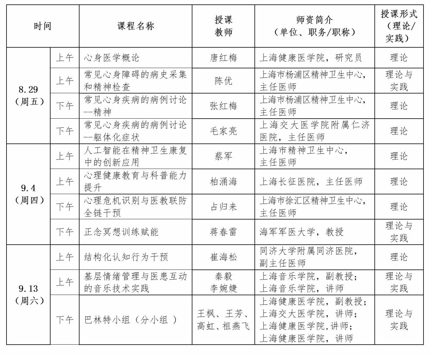 本培训班旨在建立一套以服务能力为导向、以实操为核心、以协同为特色的心身健康继续教育培训体系,全面提升社区医生、高校心理教师和精神卫生专科医师在基层层面识别、干预与协同应对常见心身问题的能力,助力构建“早识别—早干预—早转诊”的基层心理健康服务闭环。