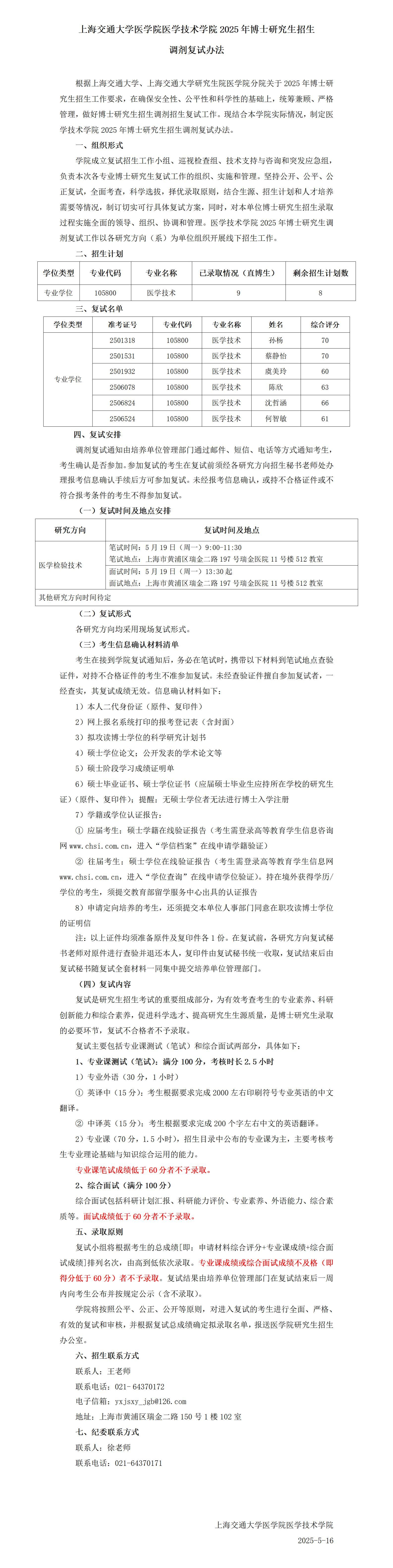304am永利集团官网医学技术学院2025年博士研究生招生